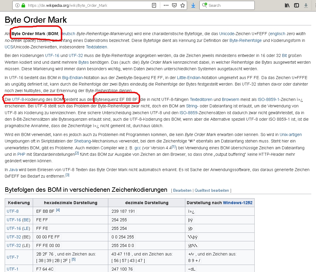 BOM für UTF-8