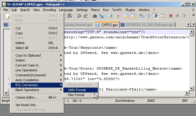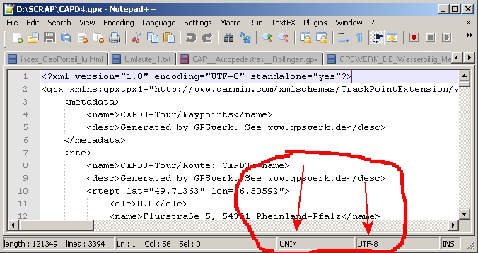 - Am Anfang einer GPX-Datei